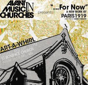 On Saturday, May 19, Chris Strouth’s Paris 1919 bring a new realm of experience to Art-A-Whirl and to Saint Boniface church, where the composer will premiere “…For Now.” Strouth’s piece kicks off a promising series curated by the composer and Drones not Drones creator Luke Heiken called “Avant Music in Churches,” dedicated to presenting challenging new music in beautiful (and acoustically beautiful) spaces and dubNemo Productions.
